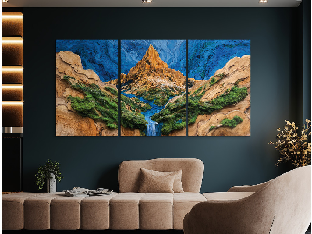 Dreiteiliges Moosbild Berührung des Lebens (Imitat)