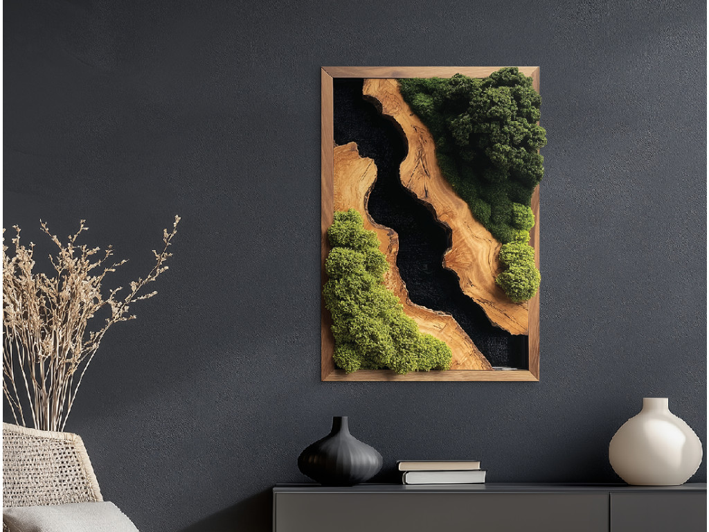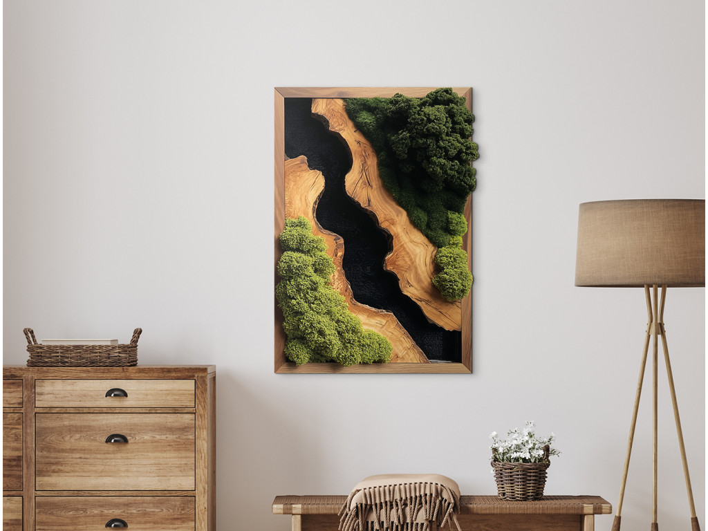 Der gedruckte Moosbild Klippe bringt eine perfekte Imitation von lebendem Moos in Ihr Interieur. Dank moderner UV-Technologie erhalten Sie einen realistischen 3D-Effekt, der keine Pflege benötigt. Dieses Bild behält über Jahre hinweg sein frisches Aussehen und kostet weniger als klassische Moosbilder. Wählen Sie ein originelles Stück, das die Schönheit der Natur mit Zweckmäßigkeit verbindet.