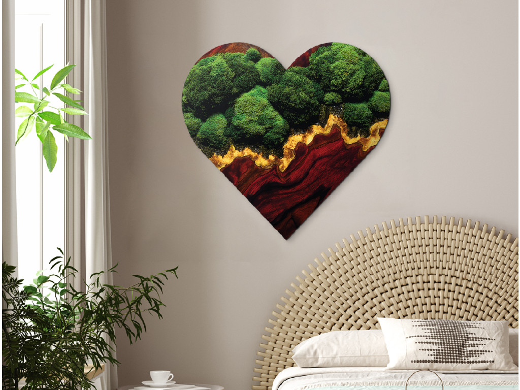 Das herzförmige Moosbild Verbindung (UV-Druck) bringt eine perfekte Imitation von lebendem Moos in Ihr Ambiente. Dank moderner UV-Technologie erhalten Sie einen realistischen 3D-Effekt, ganz ohne Wartungsaufwand. Dieses Bild behält über Jahre hinweg sein frisches Aussehen und kostet weniger als klassische Moosbilder. Wählen Sie ein originelles Stück, das die Schönheit der Natur mit Zweckmäßigkeit verbindet.