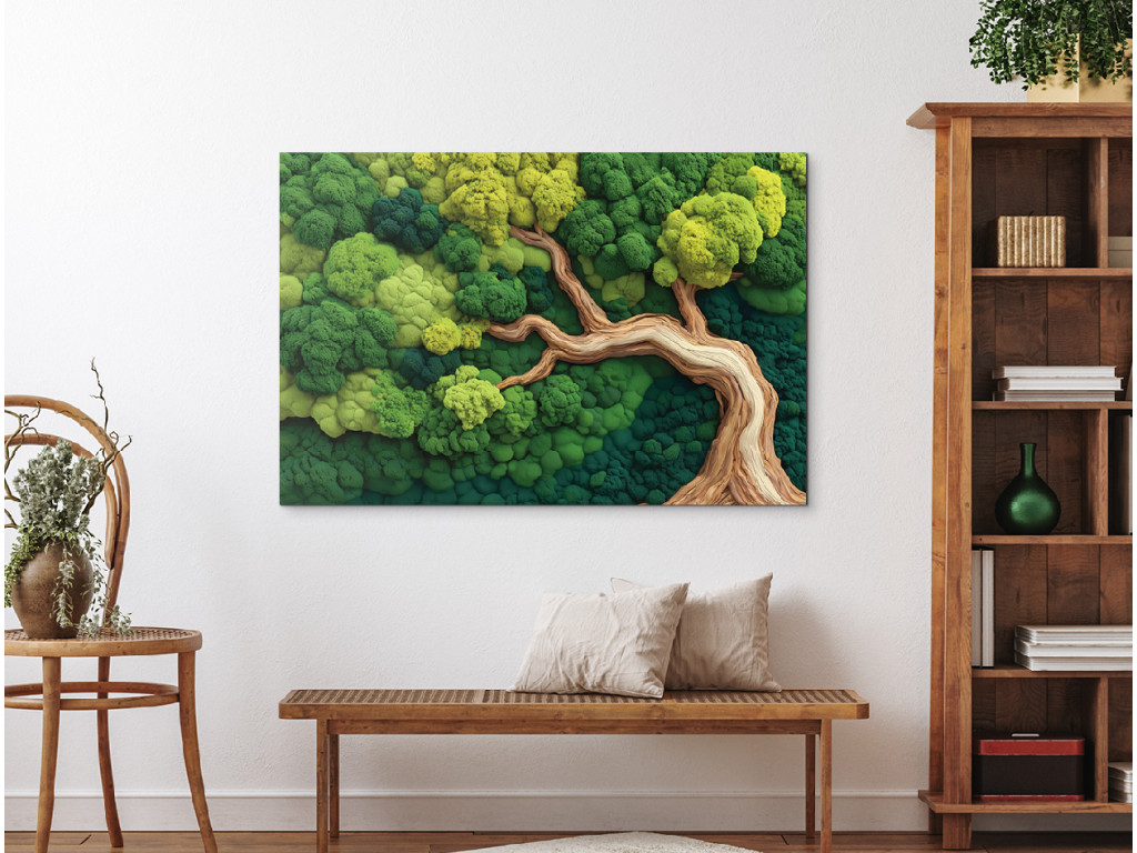 Das Moosbild „Stütze“ (UV-Druck) ist ein Design-Accessoire, das die Schönheit der Natur mit den Vorteilen des modernen Drucks verbindet. Im Vergleich zu klassischen Moosbildern bietet es einen günstigeren Preis, einfachere Pflege und lange Haltbarkeit. Dank der perfekten Imitation sieht es authentisch aus und verleiht Ihrem Interieur einen frischen grünen Akzent. Machen Sie einen Schritt in Richtung moderner Eleganz und gönnen Sie sich ein Bild, das lange hält.