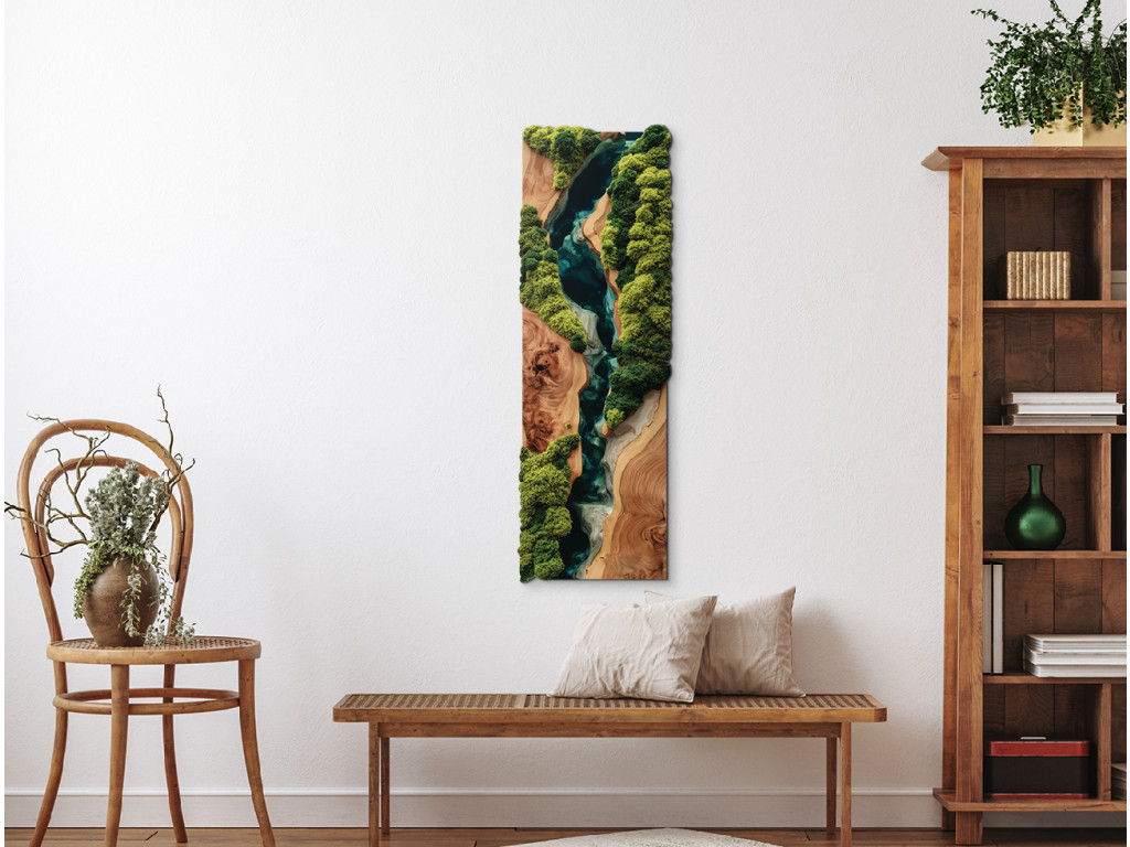 Genießen Sie den Anblick des Moosbildes „Touch of Nature“ (UV-Druck), das wie echt wirkt, aber weder gegossen noch beleuchtet werden muss. Die realistische Imitation von Moos und auffälligem Epoxidharz ist nicht nur preisgünstiger, sondern auch haltbarer als das Original. Ihr Raum erhält ein stilvolles Designelement mit langer Lebensdauer und ohne Wartungsaufwand. Dieses Bild ist die ideale Lösung für ein modernes Zuhause oder Büro.