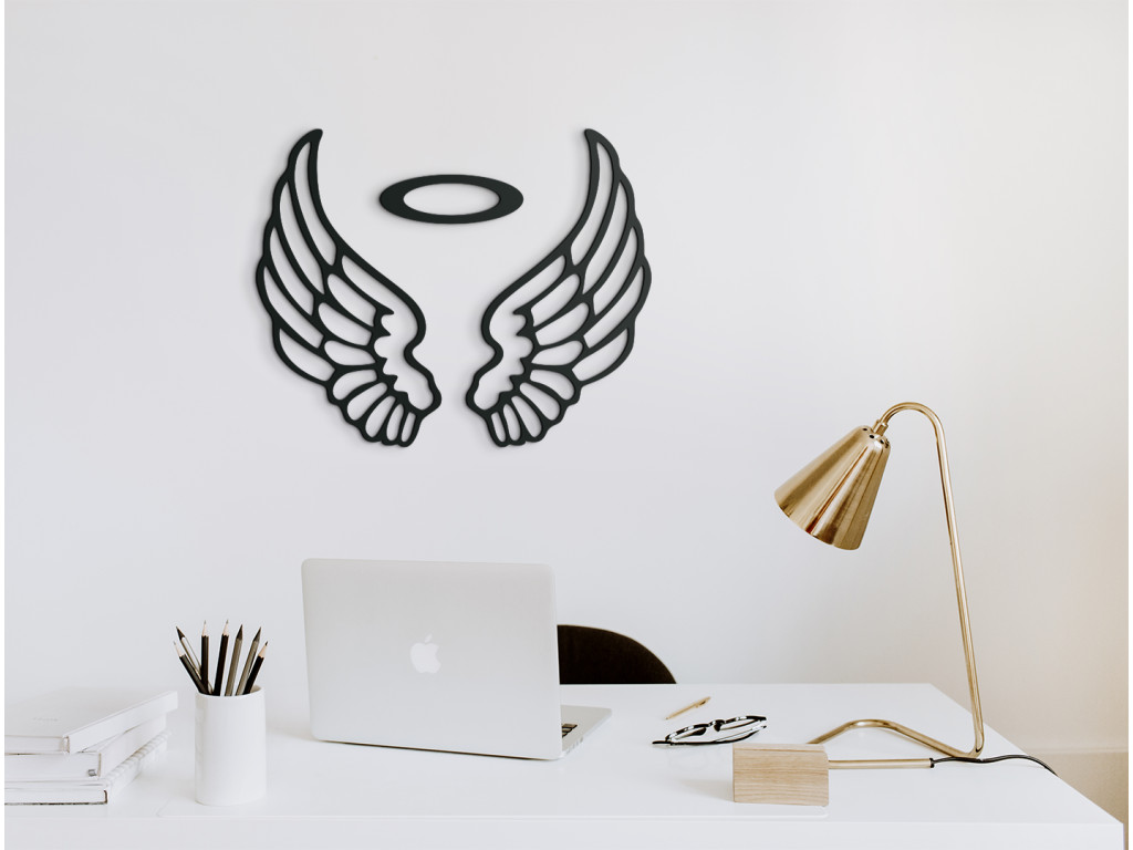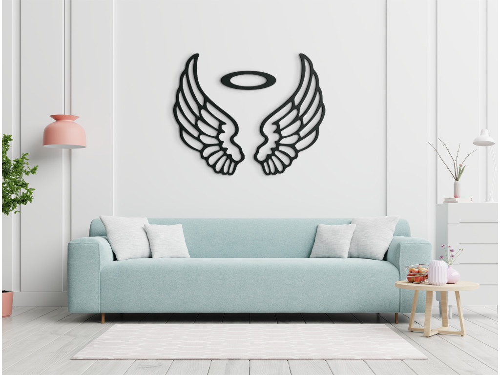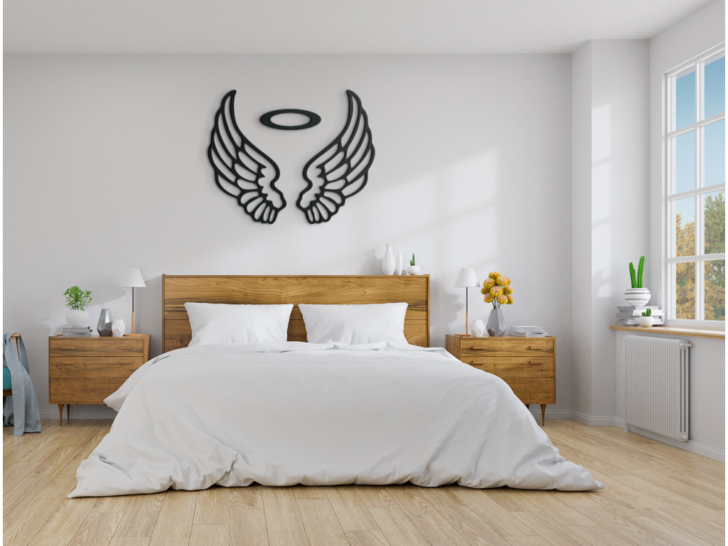 Diese Holzdekoration wird ein Symbol des Schutzes und des Friedens im Innenbereich sein . Die Engelsflügel eignen sich fürs Wohnzimmer, den Flur, das Schlafzimmer und das Kinderzimmer. Zusammen mit dem Heiligenschein sind sie ein echter Hingucker in jedem Raum.