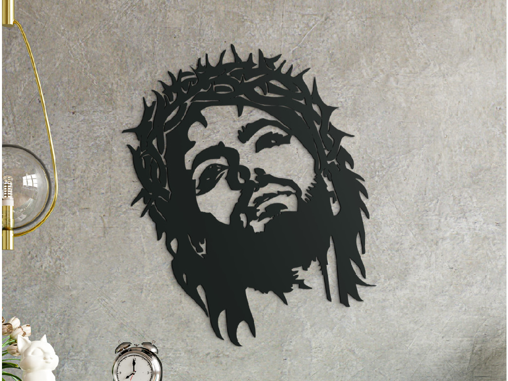 Das Bild von Jesus mit Dornenkrone wird eine der beliebtesten Dekorationen im Innenraum sein. Das Holzbild von Jesus Christus im modernen Design ist für die Wand im Schlafzimmer, Wohnzimmer und Flur geeignet. Der abgebildete, zu Boden blickende Jesus wird eine friedliche Atmosphäre in Ihr Zuhause bringen.