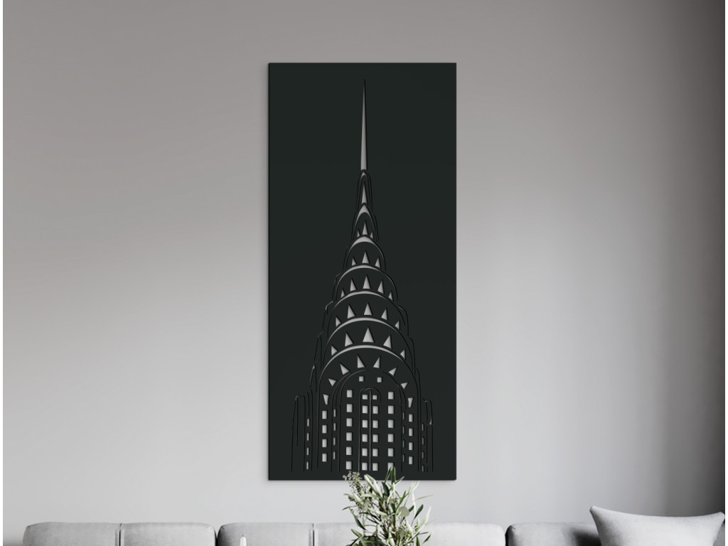 Ein Wolkenkratzer an der East Side von Manhattan ragt aus allen anderen heraus. Er war der erste weltweit, der eine Höhe von 319 Metern erreichte und sich damit in die Reihe der ikonischsten Symbole New Yorks einreihte. Heute ist es das zwölfthöchste Gebäude der Stadt und dank seines spitzen Art-déco-Stahlbogenturms in der Skyline leicht zu erkennen. Das Holzbild des Chrysler Buildings, das es in 3 Größen und 8 Dekoren gibt, stellt den Wolkenkratzer in einem vollen Rahmen durch charakteristische Linien dar.