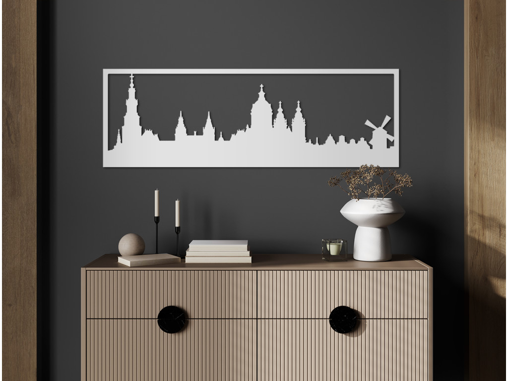 Das Venedig des Nordens zeichnet sich durch eine Vielzahl von Symbolen aus, von Grachten und Fahrrädern über Windmühlen und bunte Tulpen bis hin zu einem bunten Nachtleben. Von einem kleinen Fischerdorf im 12. Jahrhundert hat es sich zu einer Metropole entwickelt, die sowohl ein Finanz- als auch ein Kulturzentrum ist. Wir haben versucht, ein Stück der historischen Architektur der Stadt dauerhaft in einem Holzpanorama einzufangen und so ein Bild von Amsterdam in 3 Größen und 8 natürlichen Farbtönen zu schaffen. Was meinen Sie, ist uns das gelungen?