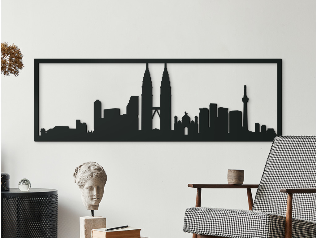Kuala Lumpur liegt in einer sich schnell entwickelnden Region und ist daher voll von modernen Annehmlichkeiten, die immer mehr Besucher aus aller Welt anziehen. Malaysias größte Stadt und Hauptstadt bietet daher unübersehbare Ausblicke auf die Wolkenkratzer-Skyline, die unser Holzbild von Kuala Lumpur einfängt. Dank seiner Panoramabreite eignet sich die Dekoration perfekt, um den freien Platz über der Couch, dem Fernseher, dem Bett, im Büro oder im Flur zu füllen.