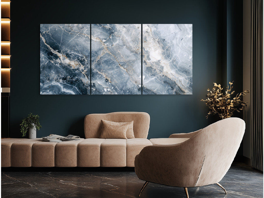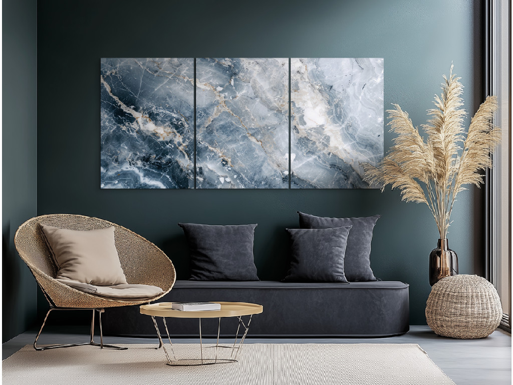 Das dreiteilige Marmorbild Wellengang ist ein markantes Dekorationselement, das die Struktur von dunklem Naturmarmor nachahmt. Dank UV-Druck auf hochwertigem PVC-Material sorgt es für einen realistischen 3D-Effekt und ein modernes Design. Es eignet sich ideal für Innenräume, in denen Sie Kontrast, Eleganz und ein Gefühl von Gediegenheit schaffen wollen. Langlebig, wartungsfrei und optisch beeindruckend – Kunst, die Bestand hat.