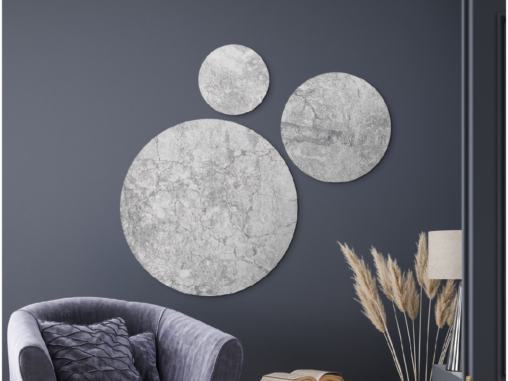 Das dreiteilige runde Bild Grauer Stein ist ein markantes Dekorationselement, das die Struktur von grauem Naturstein imitiert. Dank UV-Druck auf hochwertigem PVC-Material bietet es einen realistischen 3D-Effekt und ein modernes Design. Es eignet sich ideal für Innenräume, in denen Sie Kontrast, Eleganz und ein Gefühl von Festigkeit schaffen möchten. Widerstandsfähig, wartungsfrei und optisch beeindruckend – Kunst, die Bestand hat.