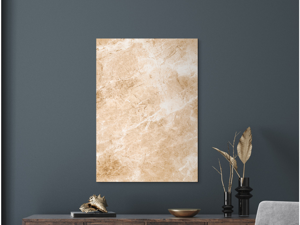 Das Marmorbild Erdfarbene Reflexe ist ein elegantes Accessoire, das das luxuriöse Aussehen von Marmor mit den Vorteilen des modernen UV-Drucks verbindet. Im Vergleich zu echtem Marmor bietet es einen günstigeren Preis, eine einfachere Montage und keinerlei Wartungsaufwand, wirkt dabei aber ebenso hochwertig und stilvoll. Sandtöne mit Marmordetails sorgen für einen kontrastreichen, modernen Effekt, der jedes Ambiente erstrahlen lässt. Gönnen Sie sich einen Hauch von Eleganz und dauerhafter Schönheit – ein Bild, das lange hält und nie aus der Mode kommt.