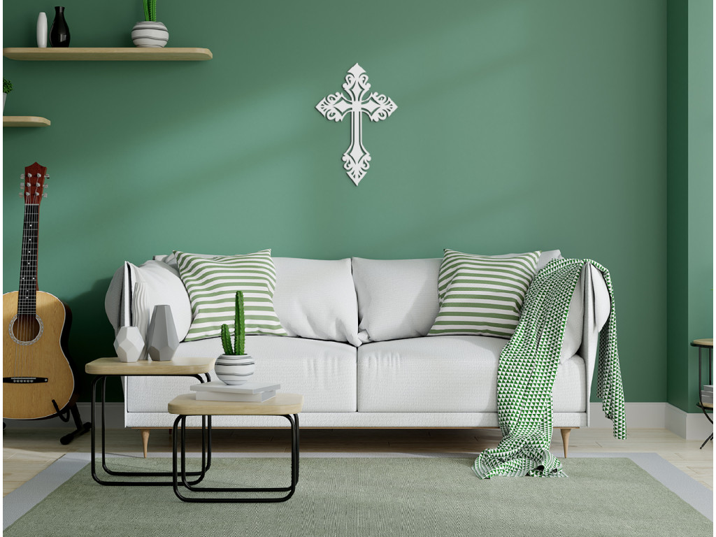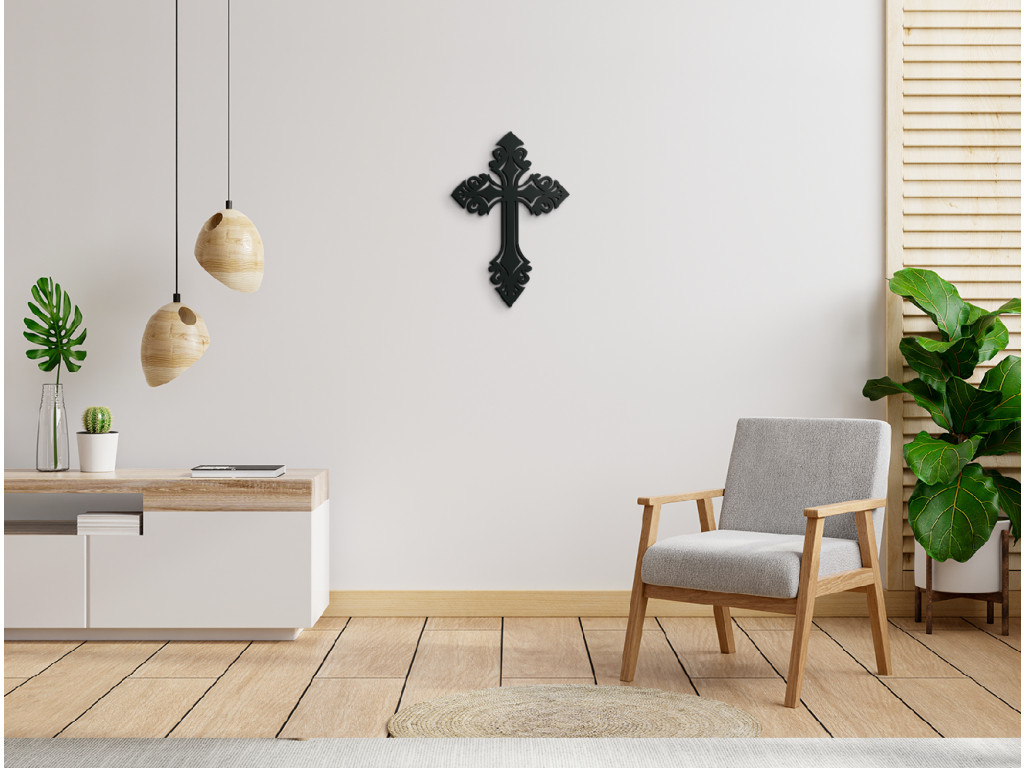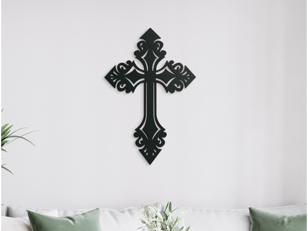 Ein dekoratives Wandkreuz, dass nicht nur Symbol des Glaubens, sondern auch ein elegantes Kunstwerk ist, dass einen bleibenden Eindruck hinterlässt. Wählen Sie die Größe und Farbe nach Ihren Vorstellungen.