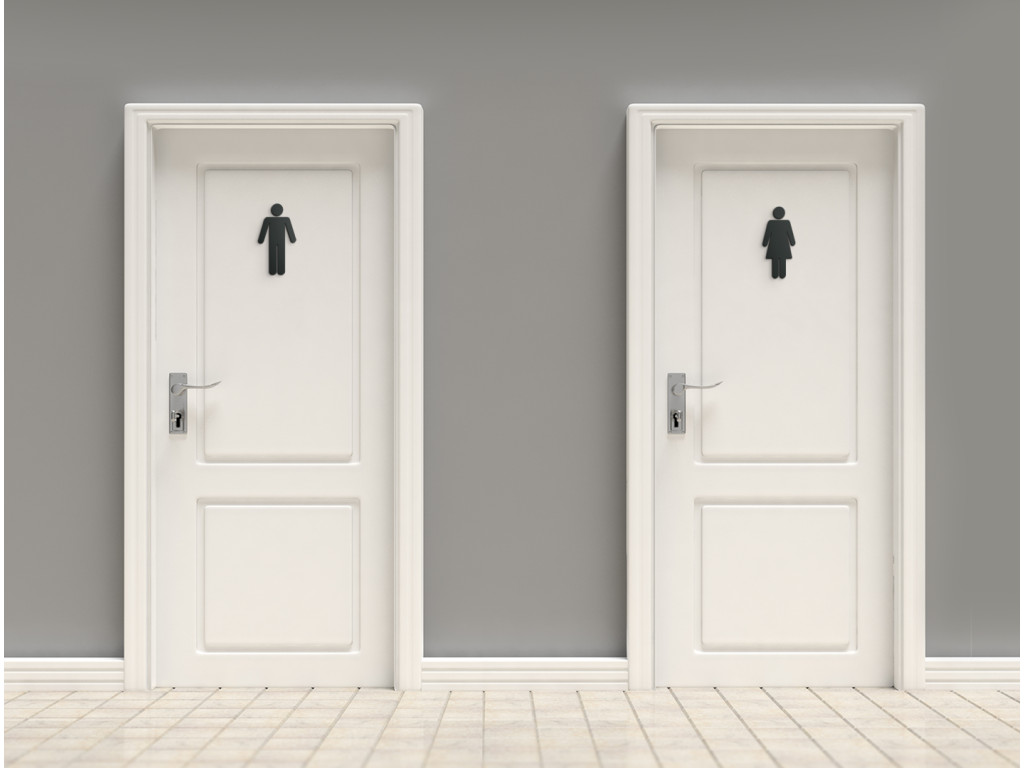 Aus Naturmaterial gefertigte Sticker mit Toilettensymbolen. Wenn Sie sie an die Wand oder an die Tür kleben, helfen Sie Ihren Kunden, den Weg zur Toilette zu finden, ohne dass sie fragen müssen.