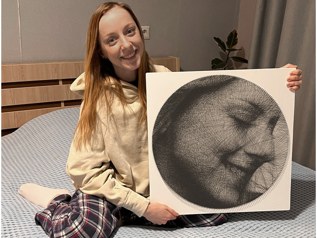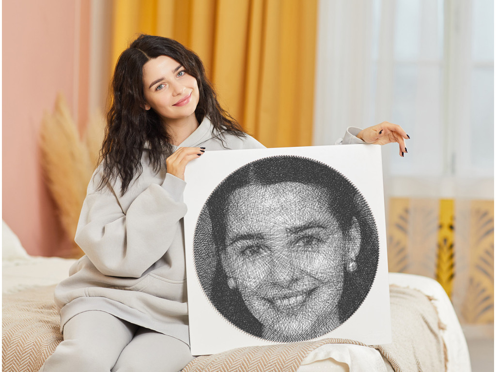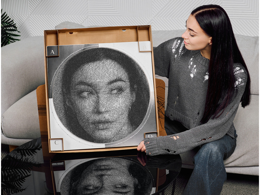 Verwandeln Sie jedes Foto in ein einzigartiges Kunstwerk! Let’s String ist ein kreatives Set, mit dem Sie jedes Bild oder Foto in ein wunderschönes Fadenbild verwandeln können. Die mobile App mit verständlichen Anweisungen und einem nützlichen Sprachassistenten hilft Ihnen dabei, Ihrer Kreativität freien Lauf zu lassen. In nur wenigen Stunden können Sie Ihr eigenes wunderschönes, personalisiertes Kunstwerk schaffen. Die perfekte Geschenkidee für alle Altersgruppen.