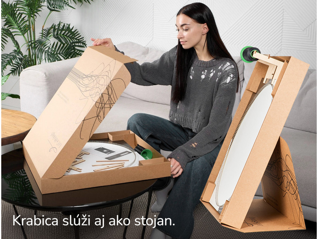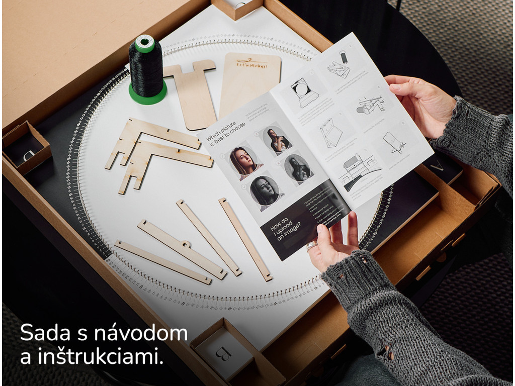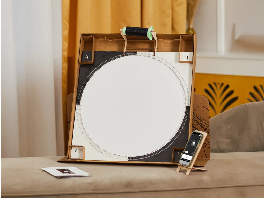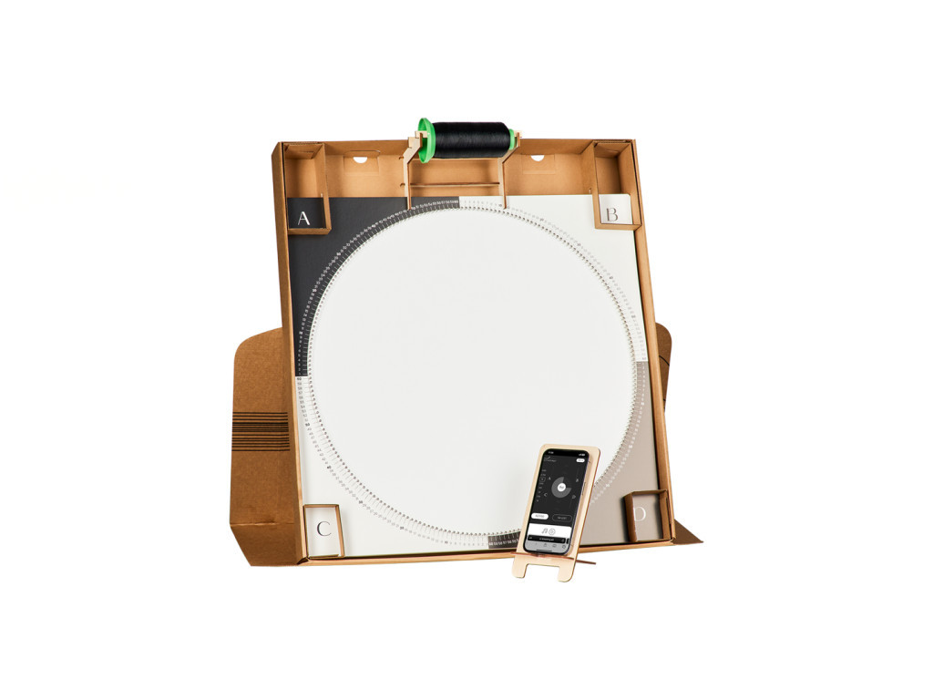 Lieferumfang: | Box (dient auch als Ständer), Nagelplatte, Faden, Handyhalterung, Anwendungs-Zugangscode, Anleitung |