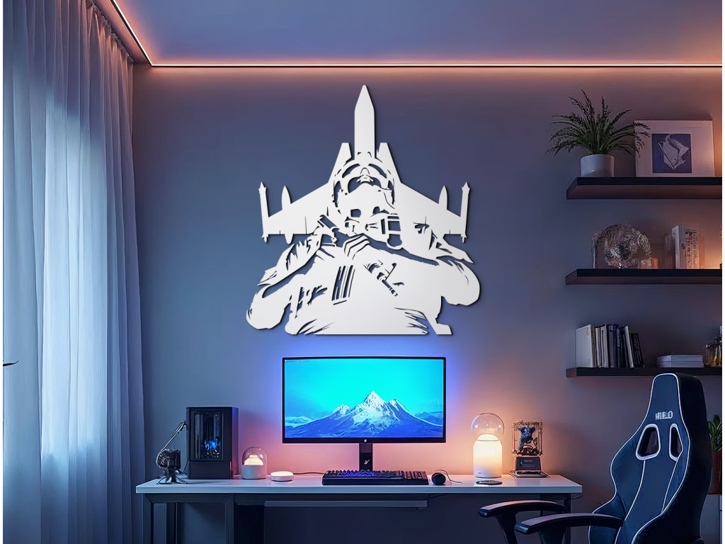 Das Holzbild Held des Himmels ist eine Hommage an Mut, Kraft und Träume, die den Himmel berühren. Das realistische Motiv eines Soldaten mit einem Flugzeug über seinem Kopf vermittelt ein Gefühl von Respekt, Entschlossenheit und innerer Ausgeglichenheit. Die präzise Ausarbeitung und die klaren Linien verleihen dem Bild einen ausgeprägten Charakter und ein modernes Aussehen. Sie können aus mehreren Farbvarianten wählen, die die Atmosphäre Ihres Hauses unterstreichen.