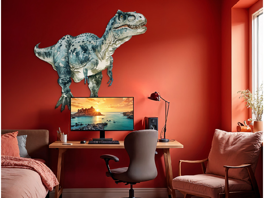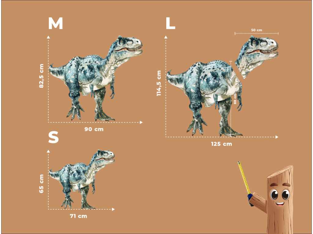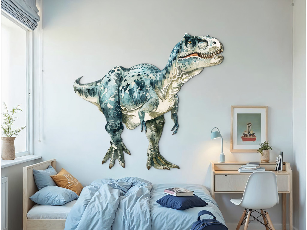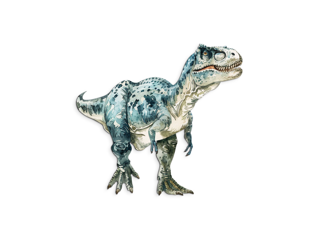 Auf dem Bild ist ein Alosaurus zu sehen – ein großer fleischfressender Dinosaurier, der vor Millionen von Jahren in der Jurazeit lebte. Mit seinen kräftigen Beinen, scharfen Zähnen und dem Blick eines Jägers wirkt er beeindruckend, aber in seiner gezeichneten Form ist er auch ideal für kleine Fans der Dinosaurierwelt. Die perfekte Ergänzung für die Wand im Zimmer jedes kleinen Paläontologen!