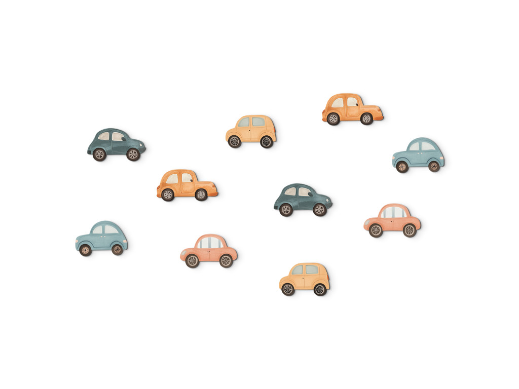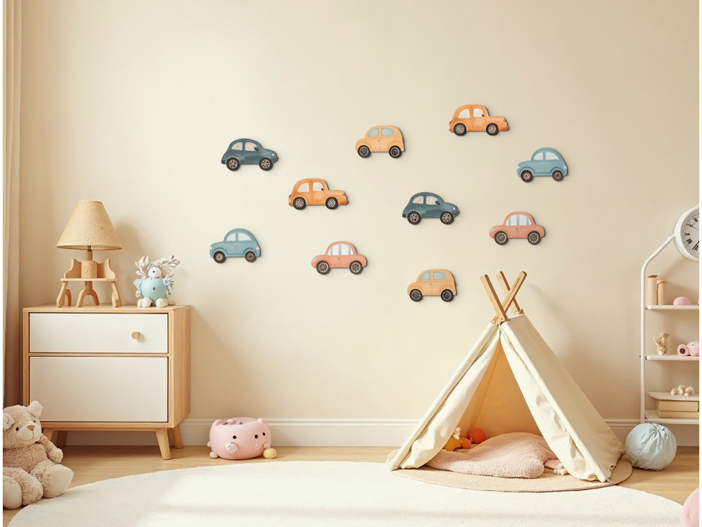 Set mit 10 fröhlichen Cartoon-Autos in sanften Farben, die jedes Kinderzimmer erhellen. Die Autos haben verschiedene Formen und Stile, was die Fantasie und das Spiel der Kinder anregt. Ideal für kleine Fans von Motoren und Abenteuern auf Rädern.