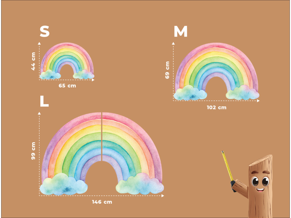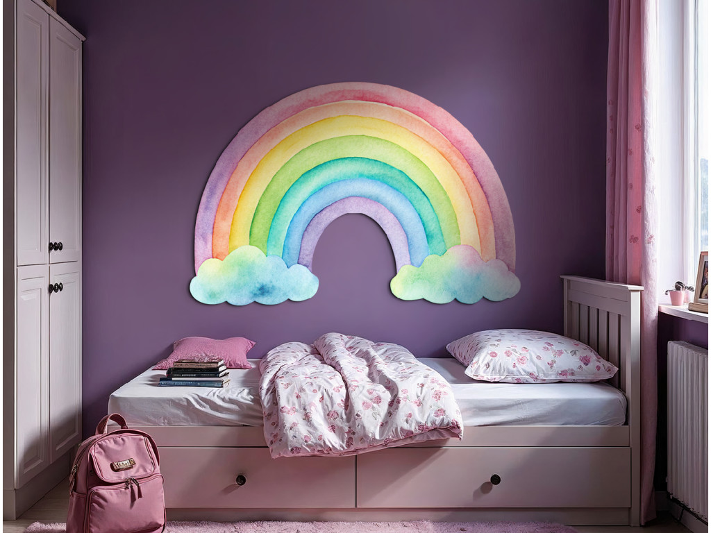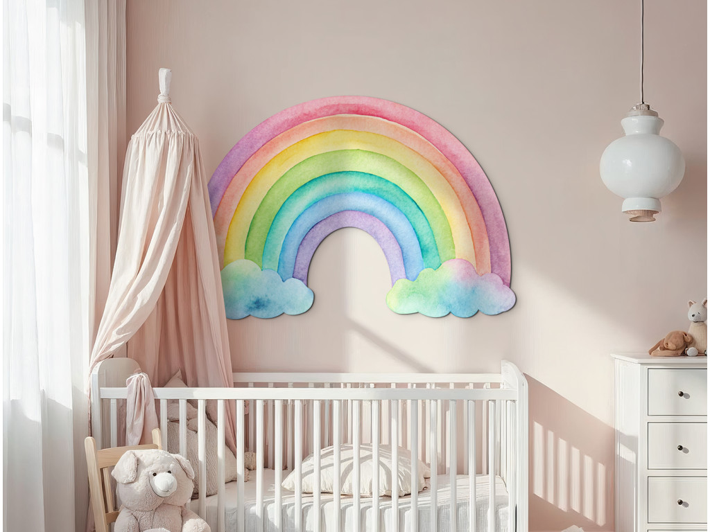 Dieser zarte Wandaufkleber zeigt einen handgemalten Regenbogen in gedeckten Pastelltönen. Die feinen Linien und harmonischen Farben wirken beruhigend und schaffen im Kinderzimmer ein Gefühl von Ruhe und Geborgenheit. Er passt hervorragend zu natürlichen und neutralen Dekorationen im skandinavischen Stil.