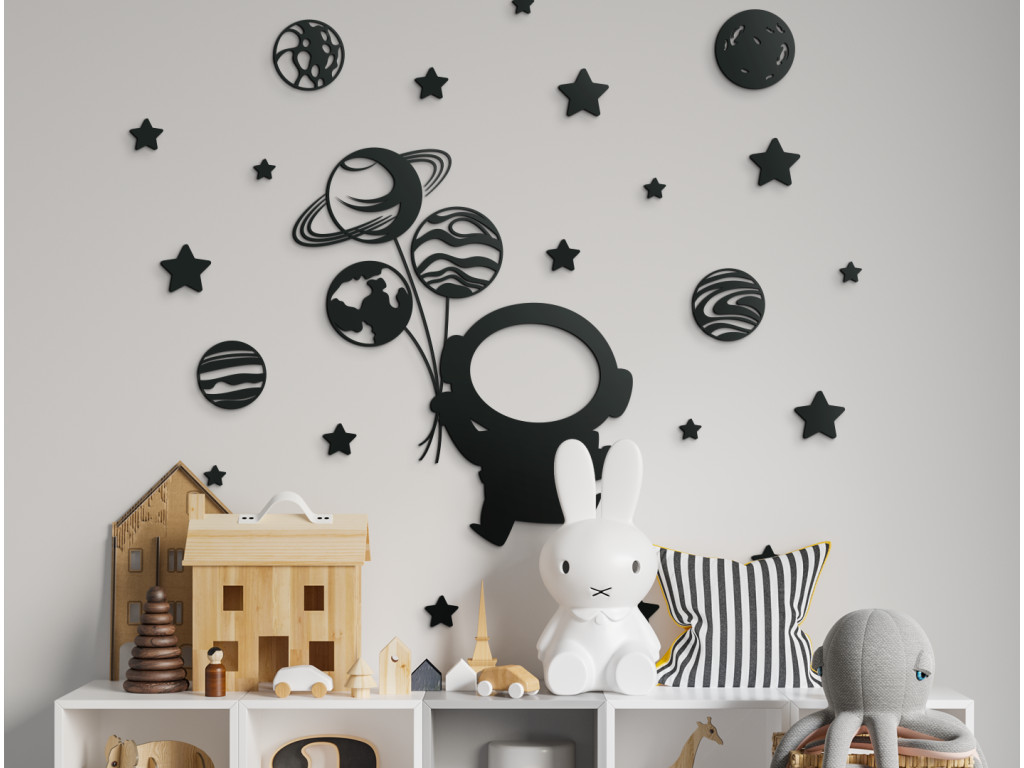 Bringen Sie Kinderaugen zum Leuchten und machen Sie ihnen mit diesem Stickerset eine Freude. Die Sticker KOSMONAUT IM WELTALL passt wunderbar in Mädchen- und Jungenzimmer. Verschönern Sie langweilige Wände mit stilvollen Stickern im trendigen Design. Das Set enthält 26 Stickerteile.