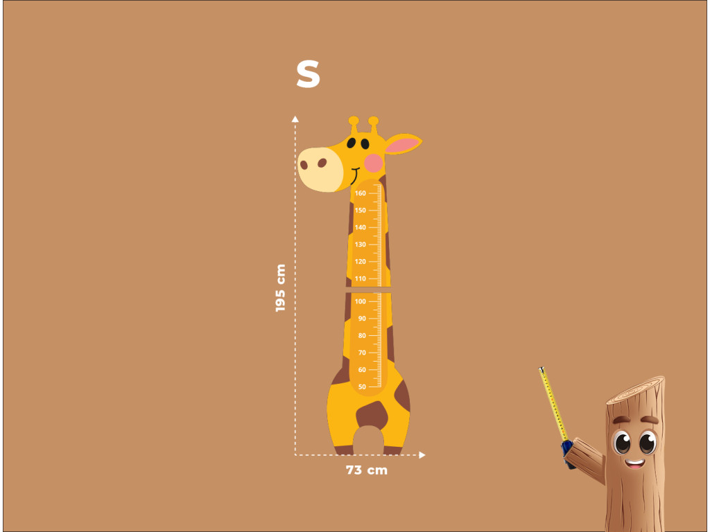 Das Kinder-Wandmaßband mit Giraffenmotiv ist ein verspieltes Accessoire, mit dem Kinder ihr Wachstum verfolgen können. Das farbenfrohe Giraffen-Design sorgt für eine fröhliche Atmosphäre im Zimmer und dient gleichzeitig als praktische Dekoration. Es misst die Körpergröße von Kindern bis 160 cm und ist somit der ideale Begleiter für viele Jahre des Wachstums und der Erinnerungen.