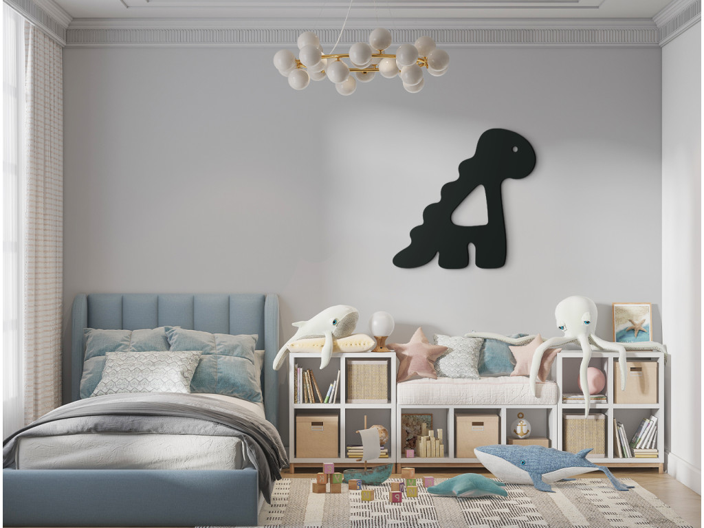 Machen Sie Ihren Kindern eine Freude und dekorieren Sie ihr Zimmer mit einer ausgeschnittenen Dinosaurier-Dekoration. Das Farbdesign lässt sich leicht auf die Gesamtausstattung des Kinderzimmers abstimmen.