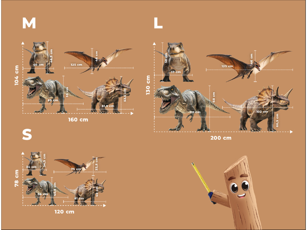 Ein gezeichnetes, aber realistisch gestaltetes Set mit vier Dinosauriern, ideal für Kinder, die sich bereits stärker für die prähistorische Welt interessieren. Dank ihrer detailreichen und zugleich freundlichen Gestaltung bringen sie eine abenteuerliche Atmosphäre in das Zimmer und wecken die Neugier auf längst vergangene Zeiten.