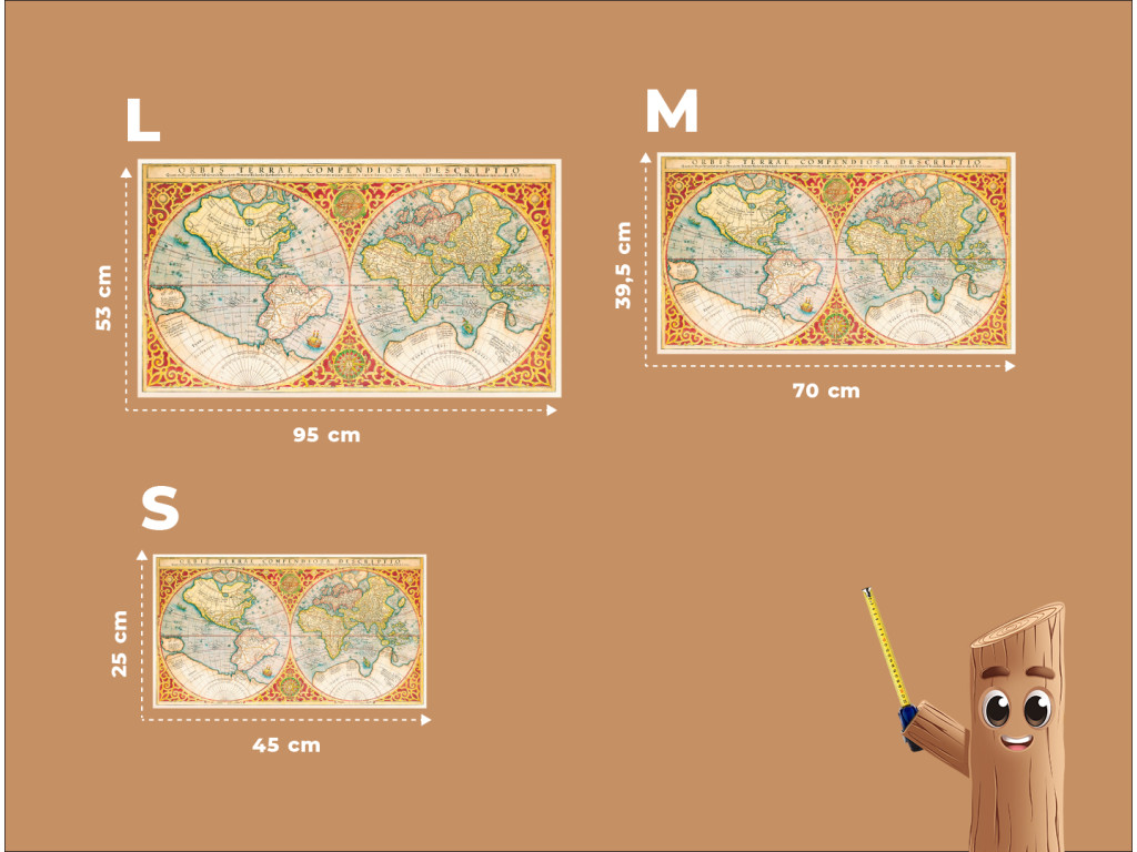 Die historische Weltkarte von Gerhard Mercator aus dem Jahr 1587 gehört zu den ersten Werken, die die berühmte Mercator-Projektion verwenden. Die Karte stellt einen Durchbruch in der Kartografie dar und hat die Darstellung der Welt grundlegend beeinflusst. Sie hat sowohl einen lehrreichen als auch einen dekorativen Charakter und eignet sich ideal für Arbeitszimmer, Bibliotheken oder Innenräume, in denen Interesse an Geschichte und Entdeckungen besteht.
